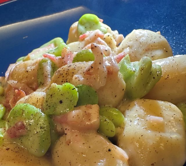 ちょうど、ニョッキを買っていたので、ベーコンとガーリック、チーズソースを作って合わせてみました。