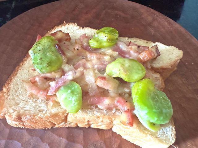 翌朝は、残ったソースで、トーストの上に!